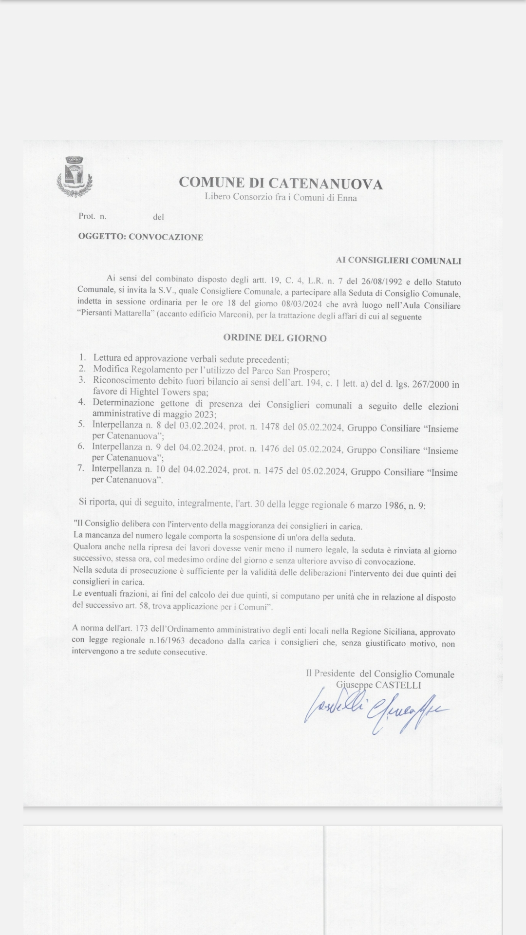 La Seduta avrà luogo nell'aula consiliare "Puersnti Mattarella" (edificio Marconi).