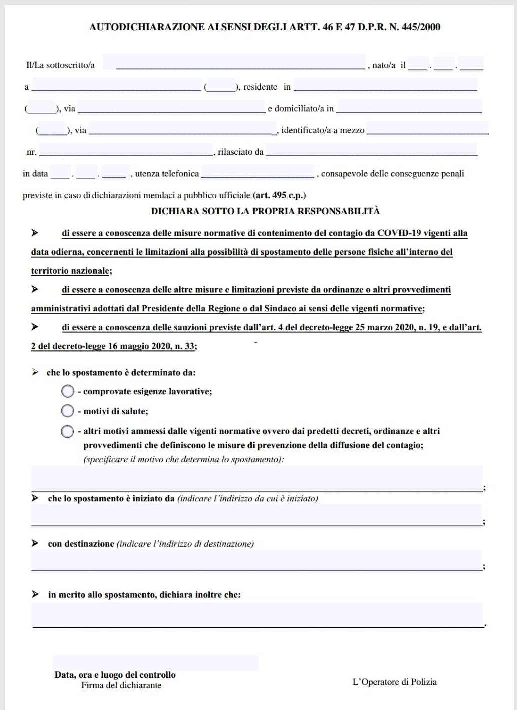 Il Sindaco Dott. Carmelo Scravaglieri comunica di aver messo a disposizione dei cittadini il nuovo modulo per l'autodichiarazione e le prescrizioni relativa all'Area Aranciomne, che si trovano qui sotto allegati e fruibili dalla Cittadinanza.