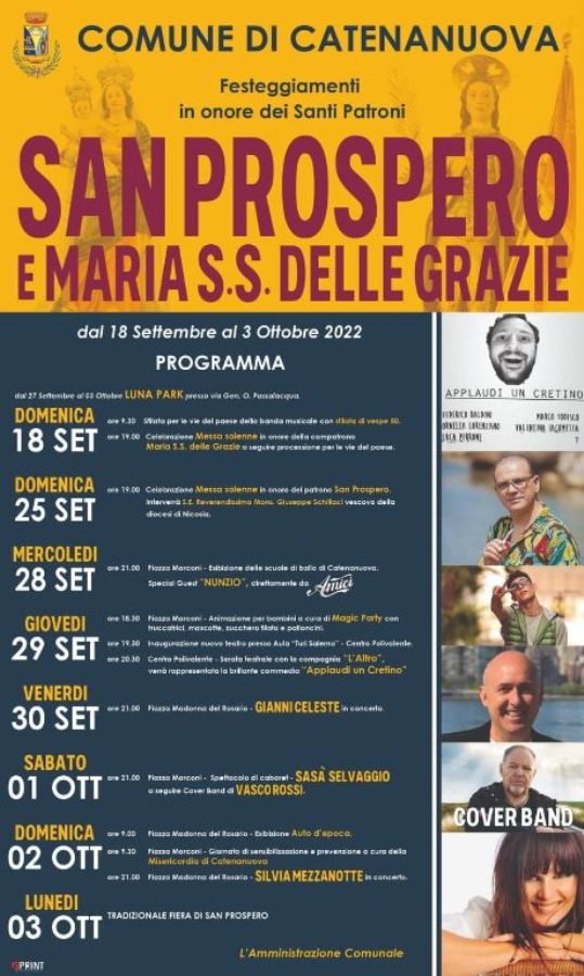 Festa di San Prospero dal 18 settembre al 03 ottobre - Il Sindaco Carmelo Scravaglieri e l'Amministrazione Comunale augurano alla Cittadinanza